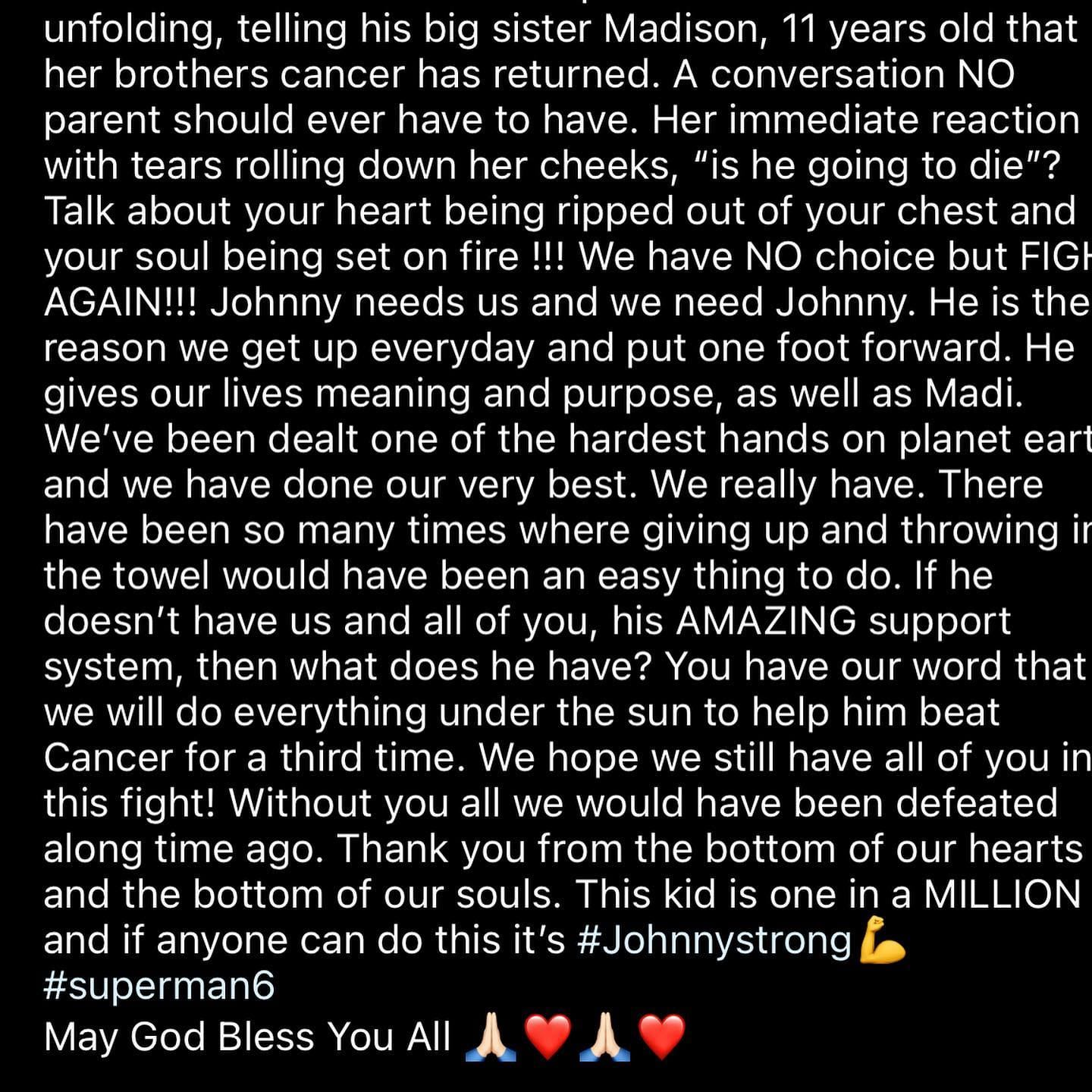 We want you to understand why #johnnystrong is everywhere you look in the restaurant and what he stands for. FIGHT AGAIN. Go fund me link in our bio.